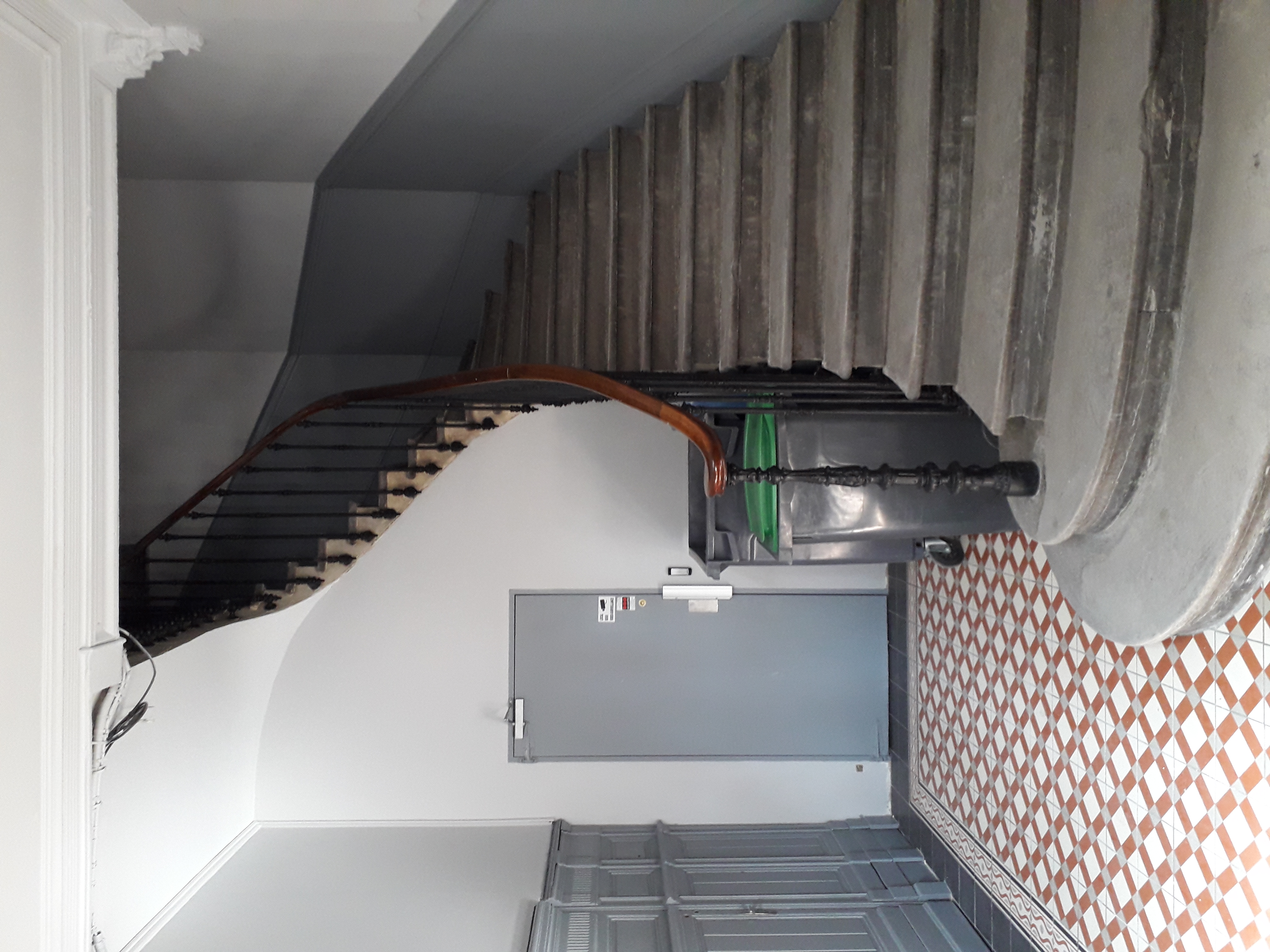 Rénovation complète des parties communes d'un immeuble - Reprise des murs et plafonds en enduit - Mise en peinture générale.